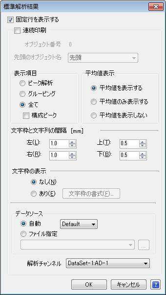 ※標準解析結果ツールは、文字揃え、行揃えの設定は、それぞれ「左揃え」「上揃え」固定です。