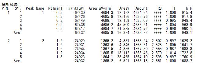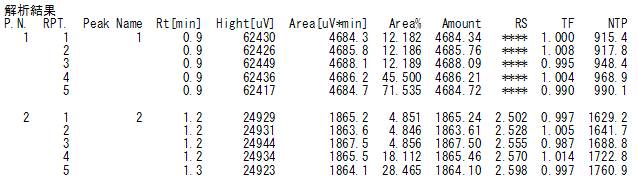 グルーピングが定義されていない場合は、ピーク解析結果のみを印刷します。