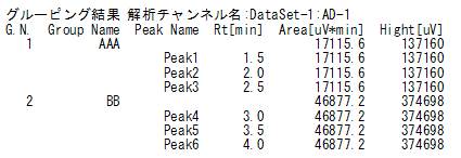 ピーク解析結果を印刷した後に、グルーピング結果を印刷します。