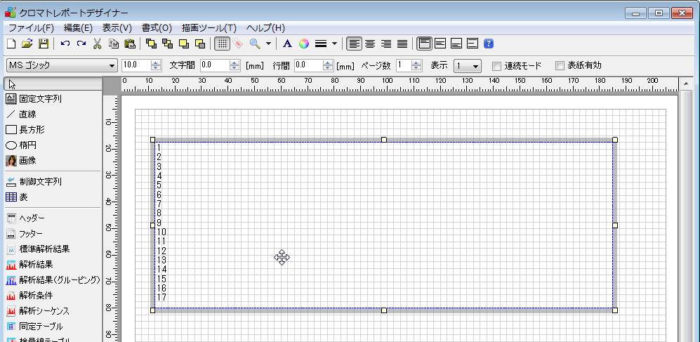 標準解析結果ツールを配置する前に、書式メニューまたはツールバーの設定コントロールにより、フォントサイズ、文字間、行間、文字色を設定して下さい。