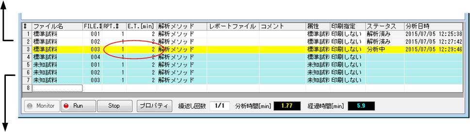 例えば、分析開始時に2分に設定してある場合は、分析中に最大60分の範囲で変更する事が可能です。
